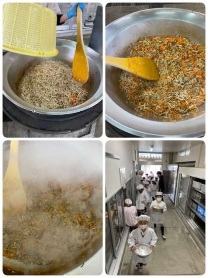 今日のメニューは、鶏肉のてり焼き・さつまいものみそ汁・きんぴらごぼう・ごはん・牛乳でした。