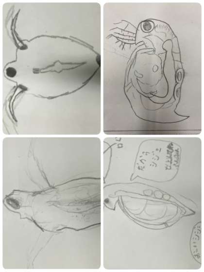 「初めて顕微鏡を使ってみるのでドキドキした」「ミジンコの心臓、卵、赤ちゃんが見えた」「ミジンコは透けていてきれいだった」「目玉が意外と大きくておもしろかった」「思ったより寿命が短くてびっくりした」「かわいかった」「小さくても速くてすごい」「キモかわいかった」