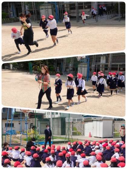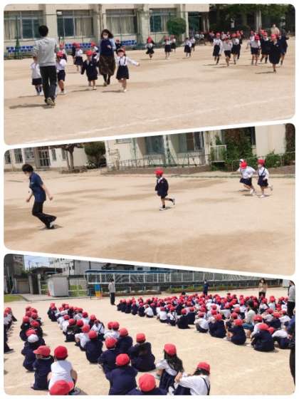 火災を想定した避難訓練をしました。今年度も昨年同様、感染症予防対策のため低学年・中学年・高学年に分かれ実施しました。