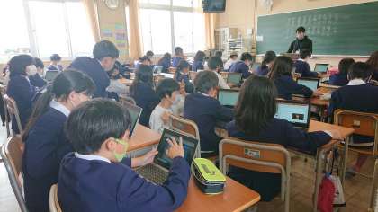 6年生の授業では1人1台端末を活用した学習を行っていま