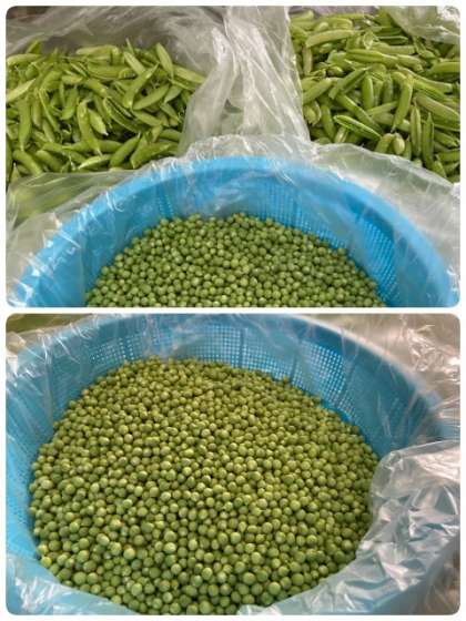 えんどうの卵とじのえんどうは、さやからとった生のえんどうを使っていました。