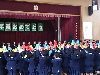 多数の子ども・保護者・地域の皆様の参加のもと「卒業おめでとう集会」を実施しました。各学年からの呼びかけや音楽演奏、卒業生の劇「走れメロス」など楽しい会になりました。卒業式(19日)まで、あとわずかですが、思い出づくりの3学期後半がスタートしています。