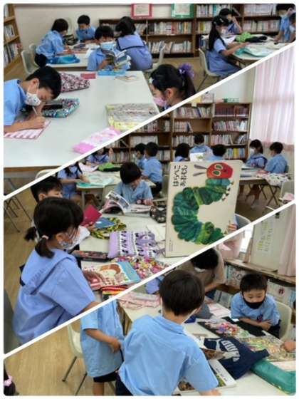 図書室で本を読みました。いろいろなジャンルの本を読んでいました。迷路をしたり大型の絵本を読んだりしていました。これからもたくさん本を読んでいきましょう。