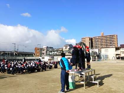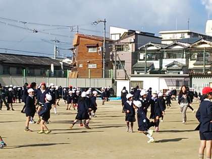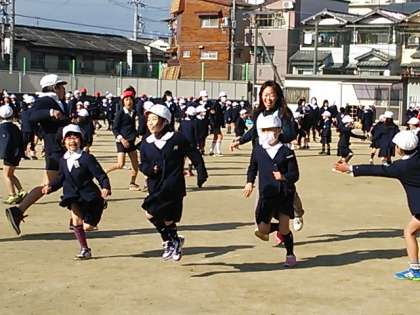 寒い日が続いていますが、今朝はいい天気です。毎週水曜日の児童集会で「全校おにごっこ」をしました。みんな笑顔で広い運動場を走っています。体もポカポカしてきました。さあ、一時間目のスタートです。