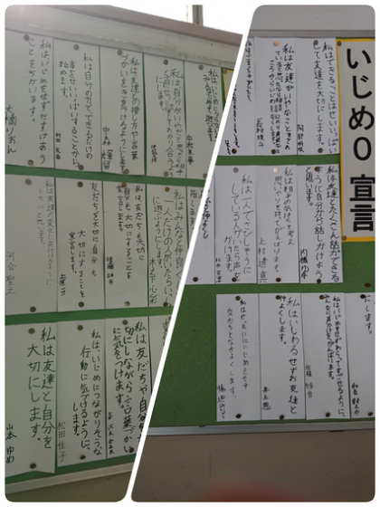 内容は、いじめ0宣言のアピール文や学級新聞などが、あり