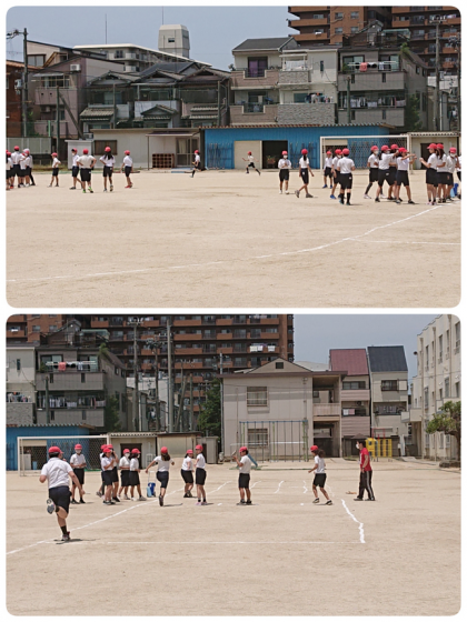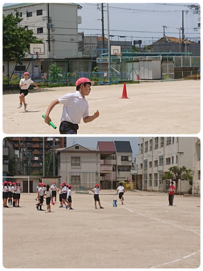 リレーの競走で、バトンパスの練習を重ね、仲間の気持ちを