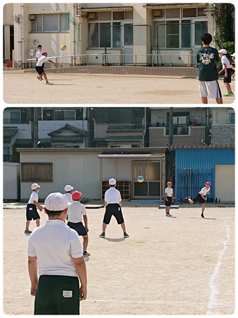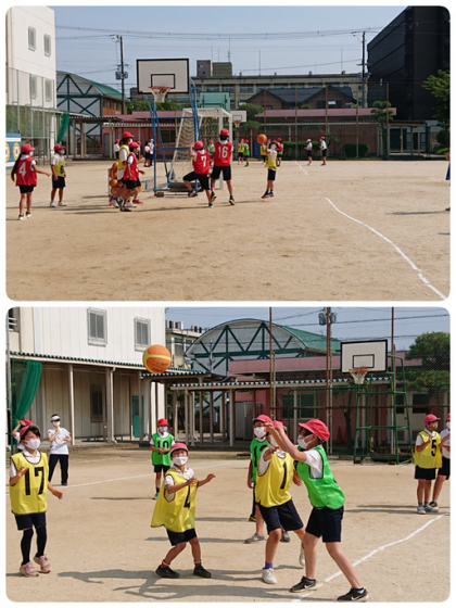 屋外ではバスケットボール、ドッヂボールと暑い中、一生懸命
