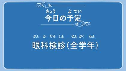今日は眼科検診のため、4〜6年生の下校時間が変更となります。