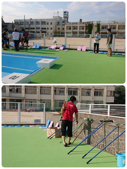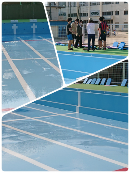 28日(月)のプール開きに向けて新しいプールの清掃が