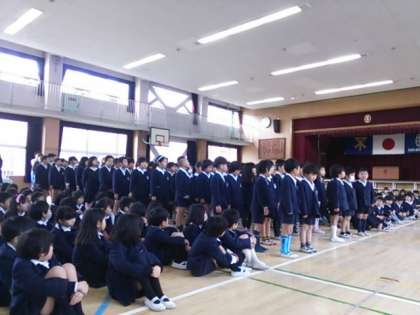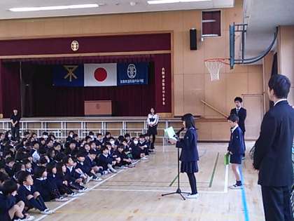 どの学年の児童も1000時間以上授業で学んだという充実感でいっぱいでした。「一年間を振り返って」を2年生は呼びかけ、4年生は作文発表をしました。また、春休みの生活指導で「自転車の正しい乗り方」について先生方の劇がありました。