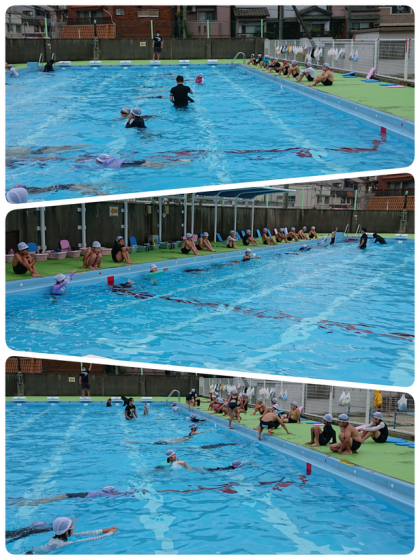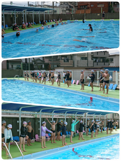 な天気。不安もありながら、4年生1・3組が水泳の授業を行い