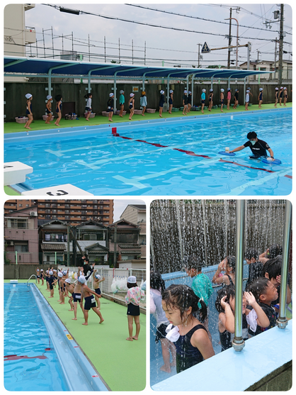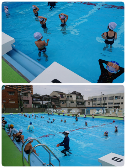 先生からの注意をよく聞いて楽しく水に慣れていました。