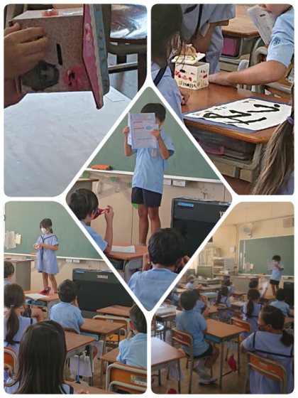 2年1組の教室では、みんなの夏休みの思い出や自主課題を