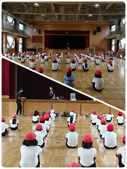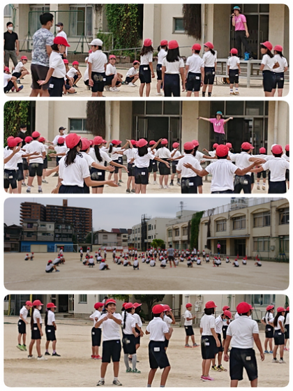 今日の1時間目、運動場では4年生が、体育館では3年生が練