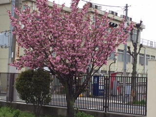 今日も雨です。講堂で学級写真を全14学級撮影しました。南東門の八重桜が満開です。子どもたちは新しい学級に少しずつ慣れてきています。
