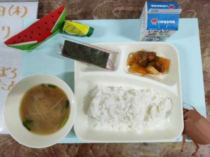 今日のメニューは、酢豚・中華みそスープ・焼きのり・ごはん・牛乳でした。