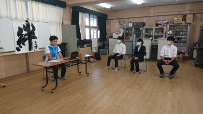今日の朝、昨日の学校休校を受けて朝会を行いました。