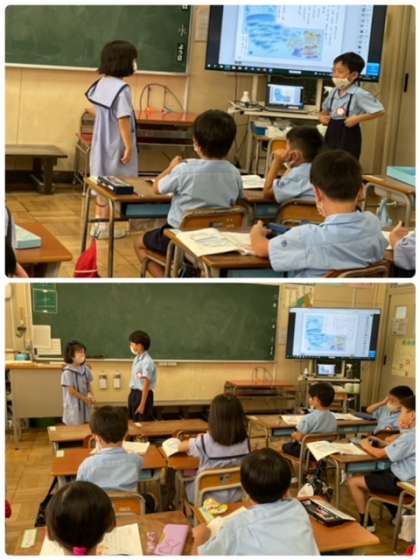国語科で「かいがら」を学習しています。「くまのこ」と「うさぎのこ」になりきって、対話しました。お話を膨らませて考えることができました。
