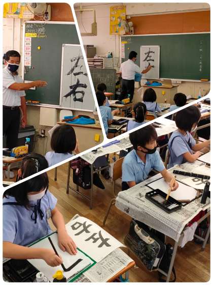校長先生がゲストティーチャーとなり、4年で書写の授業を行いました。