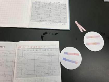 身近な水溶液をリトマス紙を、使って仲間分けしていきました。