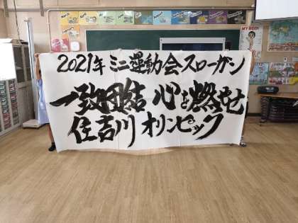 今年度のスローガンは、「一致団結 心を燃やせ 住吉川オリンピック」に決まりました。とっても熱いスローガンです!