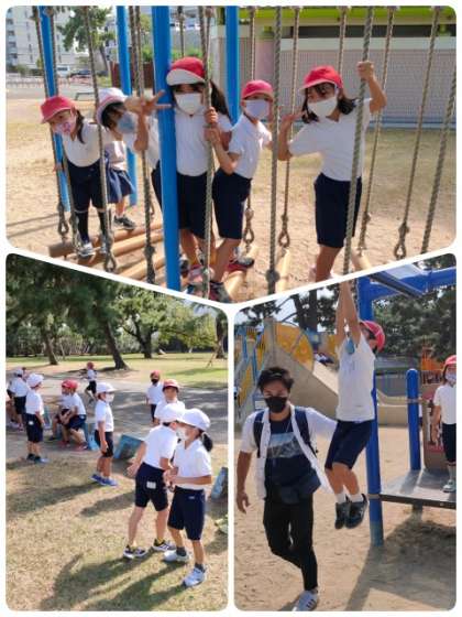 遊具で遊んだり、鬼ごっこをしたり、浜寺公園を満喫しました。
