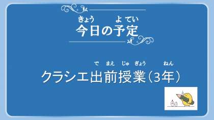 児童朝会、3年生の出前授業(クラシエ)があります。