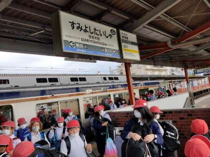 予定通り、14時24分、住吉大社駅に着きました。 もうすぐ、学校到着です。