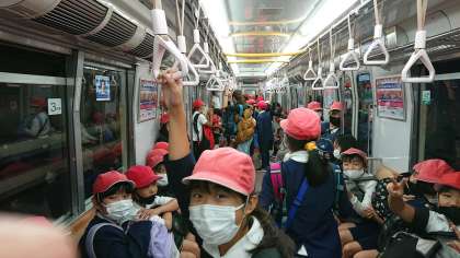 たくさん遊んだ後は、帰路につきます。 疲れも多少ありますが最後まで元気に帰ります。