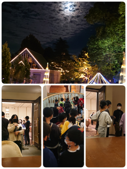 部屋までの道、秋を感じさせるおぼろ月。