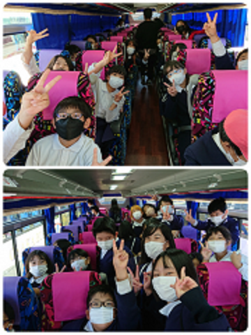 クラス写真を撮り終えてバスに乗車です。