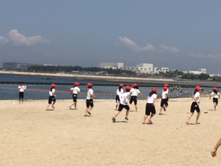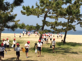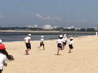 砂の上で貝がらを集めたり、鬼ごっこをしたりしました。お弁当もしっかりと食べました。