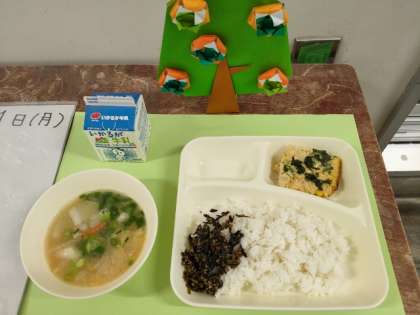 今日のメニューは、千草焼き・みそ汁・ごまひじき・ごはん・牛乳でした。