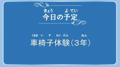C-NETの先生との学習、6年生のアルバム写真撮影、3年生の車椅子体験があります。