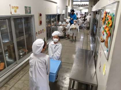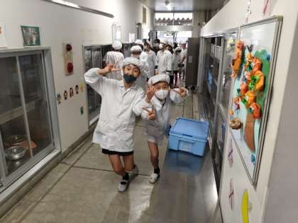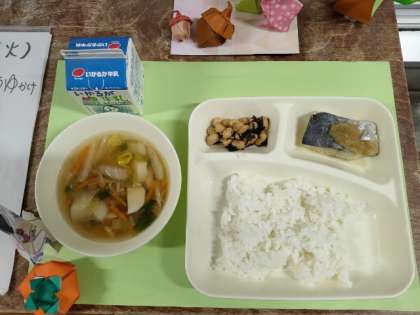 今日のメニューは、さごしのおろしじょうゆかけ・さといものすまし汁・大豆の煮もの・ごはん・牛乳でした。