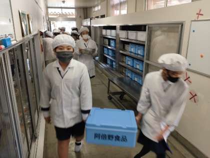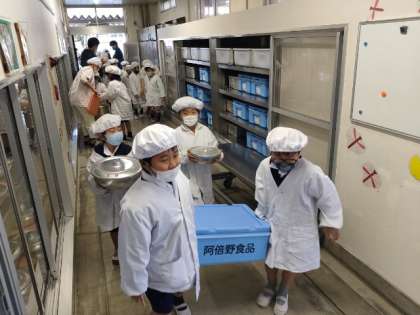 今日のメニューは、たらフライ・さつまいものみそ汁・きくなとはくさいのごまあえ・ごはん・牛乳でした。