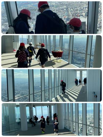 あべの防災センターの見学の様子と、あべのハルカスの見学の様子です。