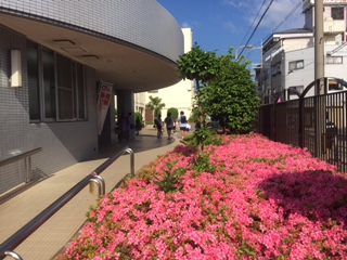 さわやかな5月です。玄関ホール東側のサツキの花が