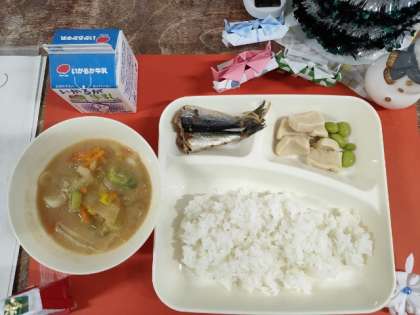 今日のメニューは、いわしのしょうが煮・みそ汁・高野どうふの煮もの・ごはん・牛乳でした。