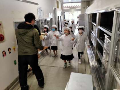 今日のメニューは、牛肉のデミグラスソース煮・コーンスープ・かぼちゃのプリン・パン・牛乳でした。