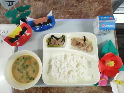 今日のメニューは、鶏肉のゆず塩焼き・みそ汁・こまつなの煮びたし・ごはん・牛乳でした。
