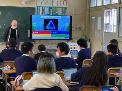 外国語の学習で、タブレットを使ってゲームに取り組みました。
