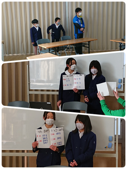 今日の朝会では保健委員会から清潔検査の報告がありました。