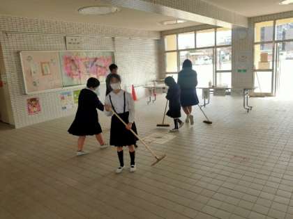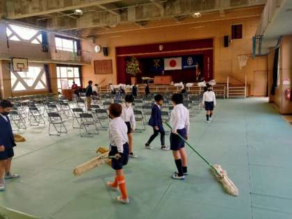 5年生が中心となり、式場準備と廊下・階段・6年教室の掃除などを行ってくれました。