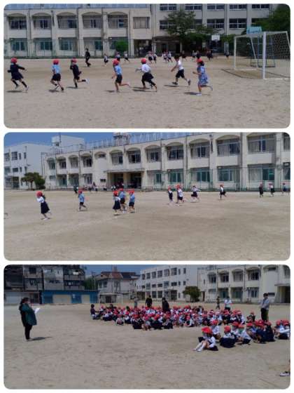 避難時に子ども達に指導している「押さない」「走らない」「しゃべらない」「戻らない」を今日の訓練ではしっかりと守ることができていました。