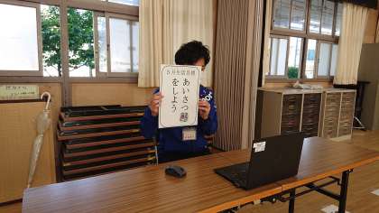 は5月最初の朝会として、今月の目標「あいさつをしよう」につい