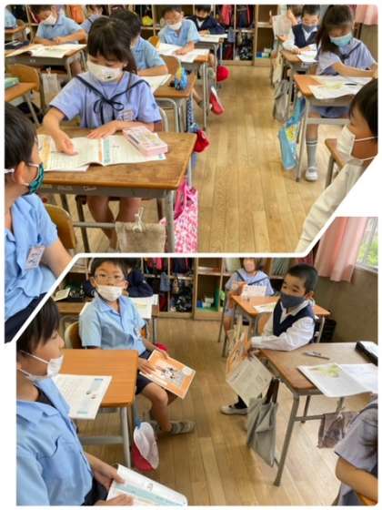 道徳科で「泳げないりすさん」の学習をしました。泳げない友達のりすさんとは遊べないと言った白鳥さんたちは、りすさんのことが気になって楽しく遊べません。白鳥さんたちはどうしたら仲良くみんなで遊べるかを考えます。そのことについて、みんなで話し合いました。みんなで仲良く遊ぶと楽しいから、これから仲間外れなどしないようにしたいなどと言っていました。