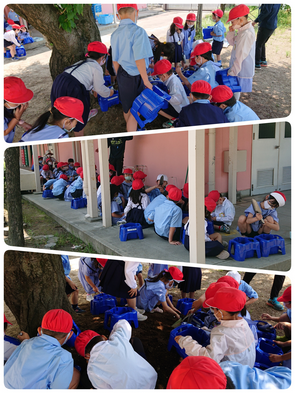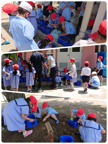 1年生の後をついていくと、みんな楽しそうに、土を入れ、