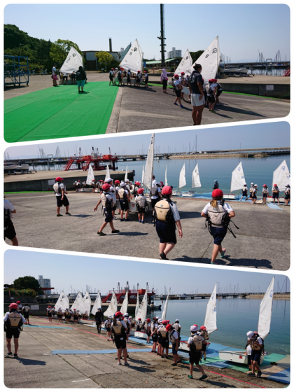 昼からヨット実習では二人一組で舵取りと風をつかむ役割があります。力を合わせてガンバってましたよ