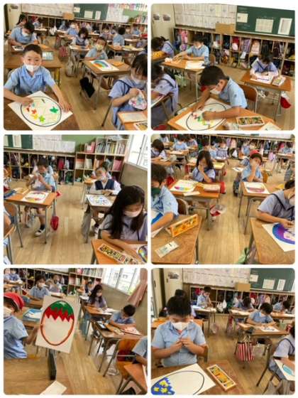 図画工作科の学習で「ふしぎなたまご」を描いています。今回は、どんなたまごかを考えながらカラフルに色を塗っていきました。しましまにしたり、ぎざぎざにしたり、星をかいたり、いろいろな模様のたまごができました。次は、たまごから何が生まれてくるのか楽しみです。